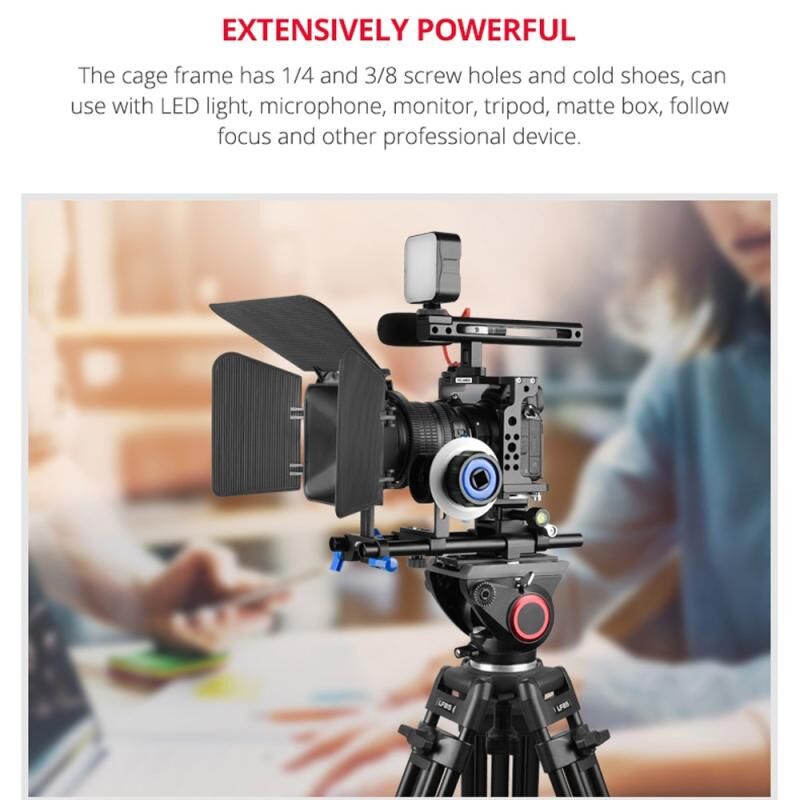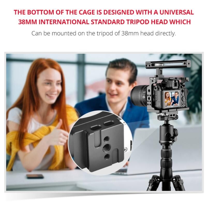 8. The bottom of the cage is designed with a universal 38mm international standard tripod head which can be mounted on the tripod of 38mm head directly.
