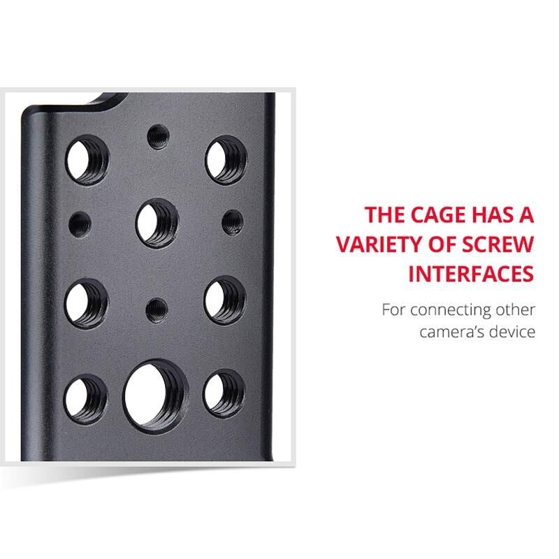 4. The cage has a variety of screw interfaces for connecting camera peripherals.