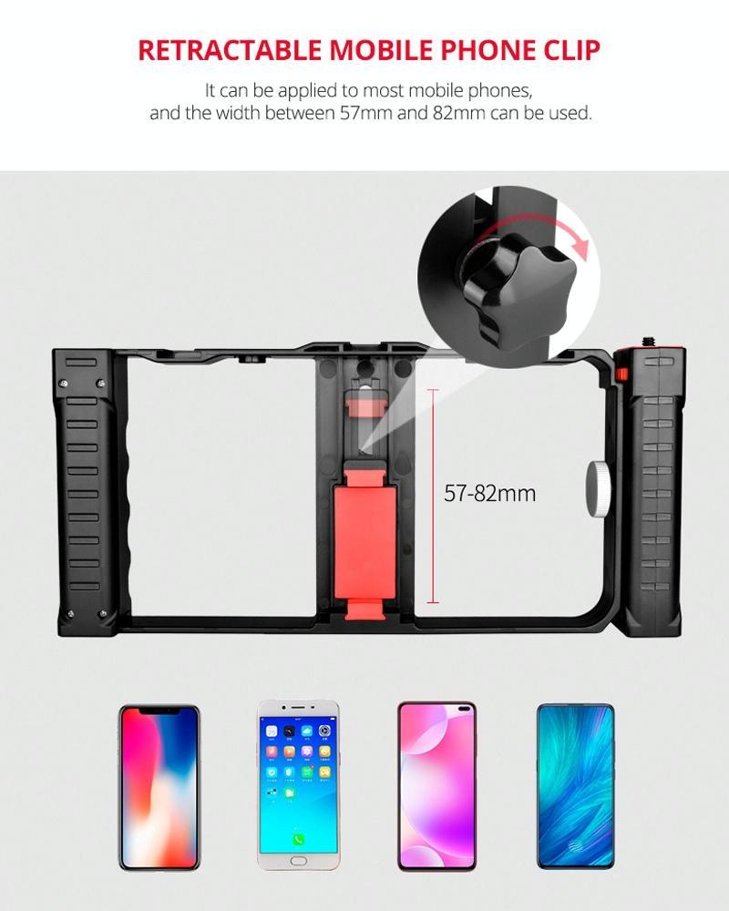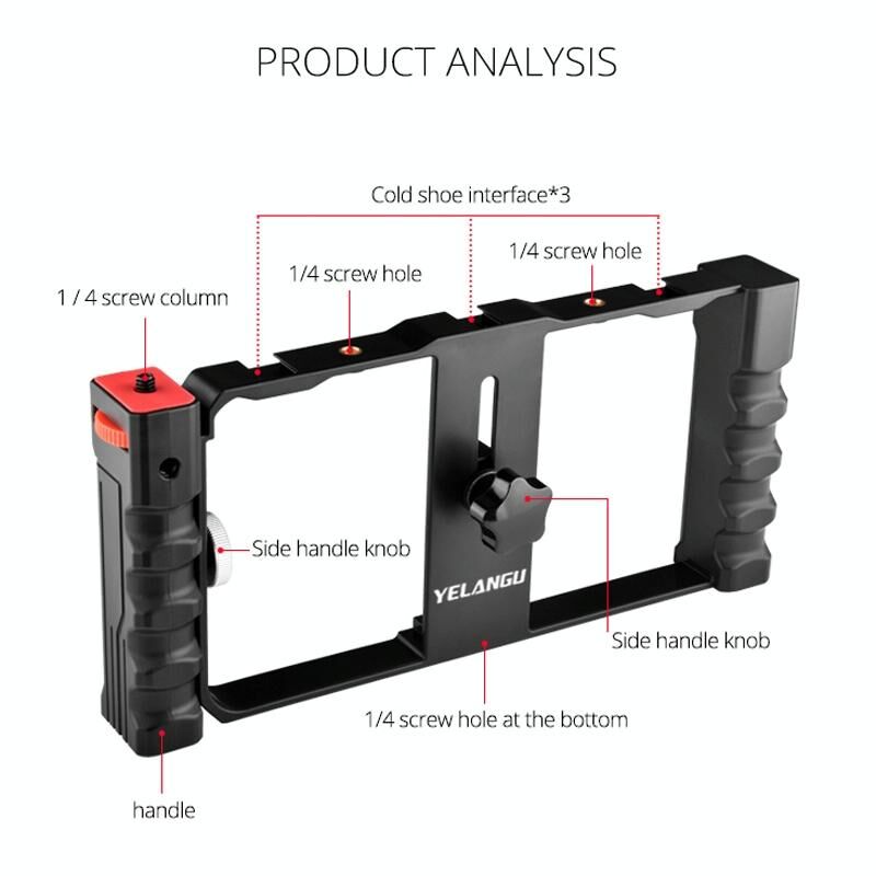 2. The handle can be installed on all sides of the cage to achieve horizontal and vertical shooting of the phone.