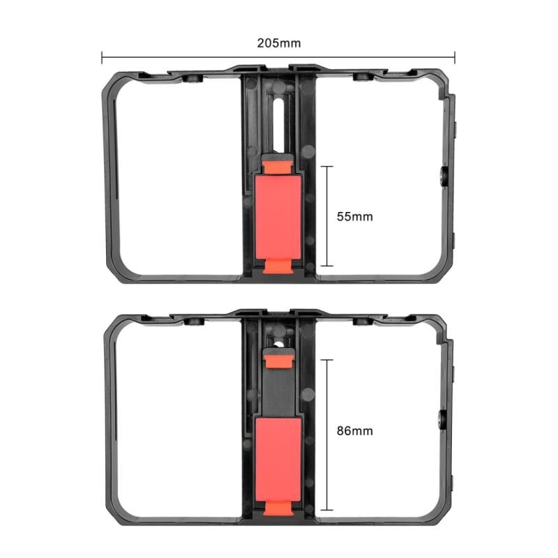 8. The side and bottom of the cage are equipped with 1/4 screw holes, which can be connected with tripods, handles and other equipment to achieve horizontal and vertical shooting