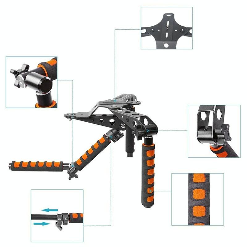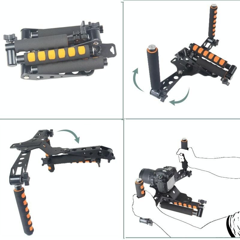 4. Increasing the head and rail rod, it can directly match with follow focus, matte box, more convenient for low shoot, shoulder shoot, handheld shoot, hand-held low shoot, etc.