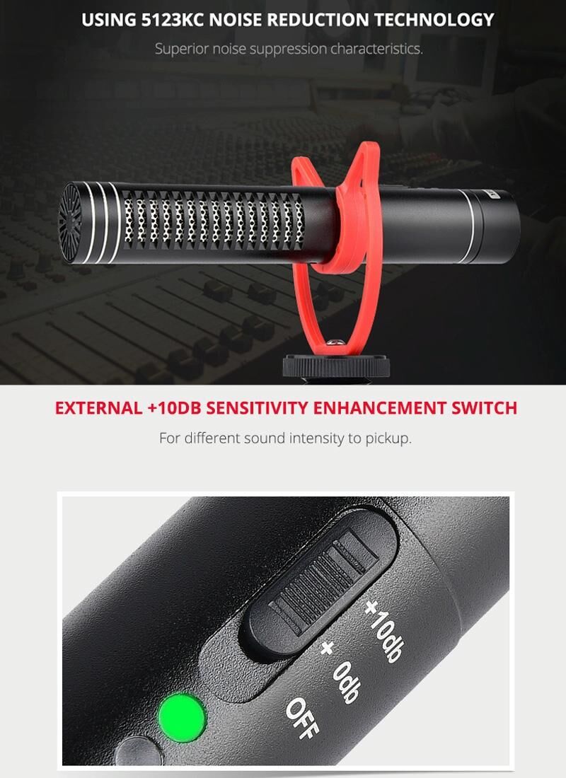 3. External +10dB sensitivity enhancement switch for different sound intensity to pickup.