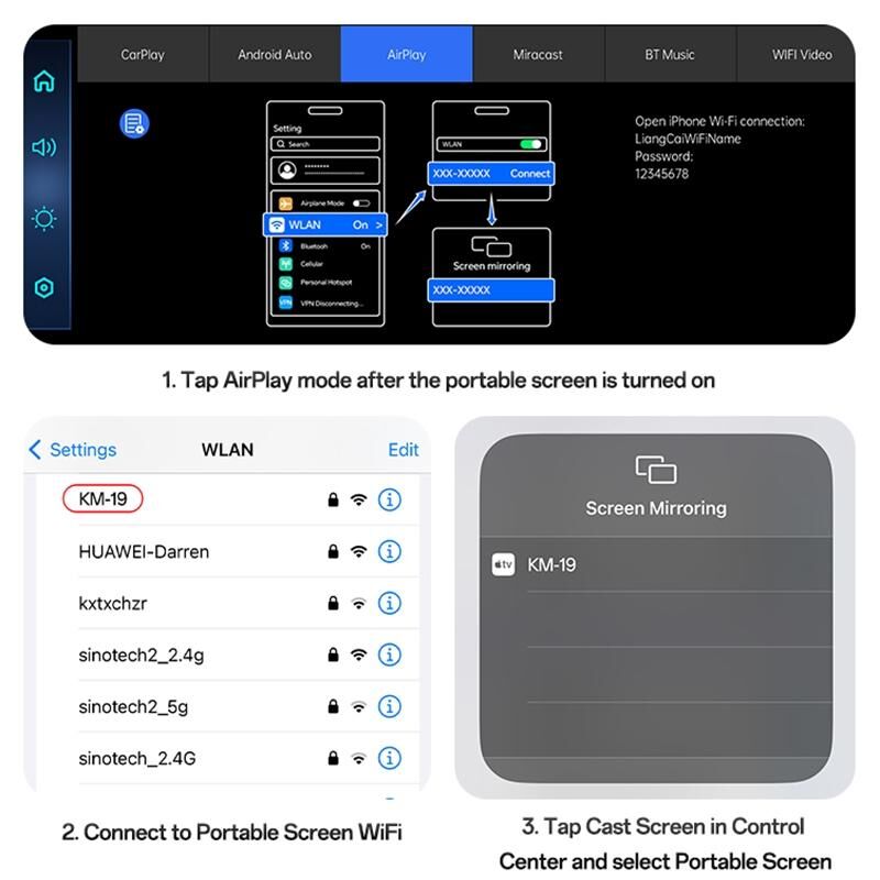 13. Λειτουργία: CarPlay + Android Auto + AirPlay + WiFi + Bluetooth 5.2 + FM + συσκευή καταγραφής οδήγησης + AUX
