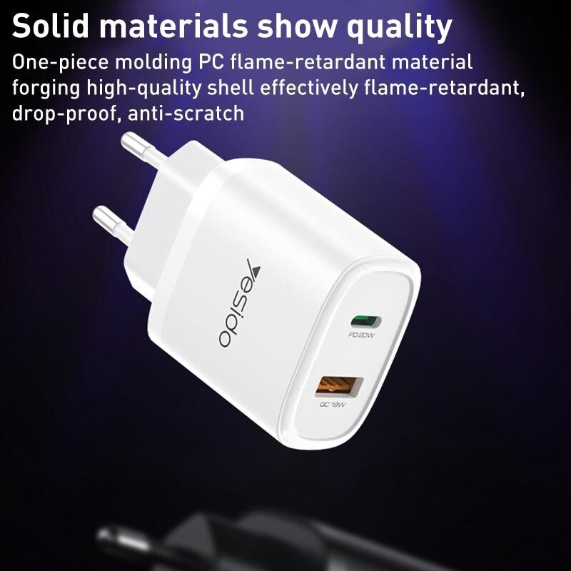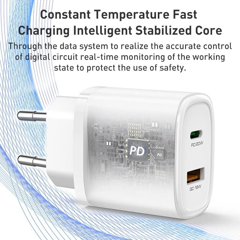 2. Σχεδιασμός διεπαφής PD20W Type-C + QC18W USB υποστηρίζει τη φόρτιση δύο συσκευών ταυτόχρονα