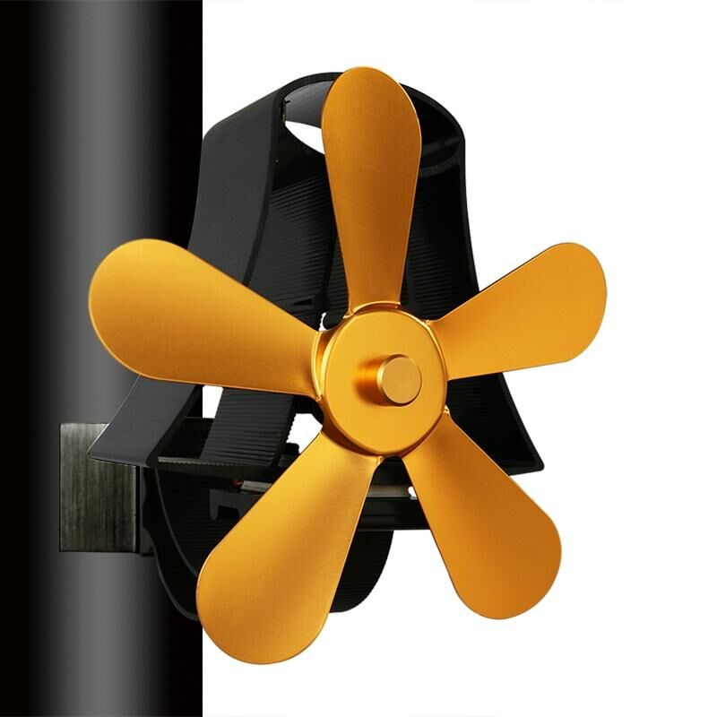 YL-106 5-λεπίδα υψηλής θερμοκρασίας αλουμινίου υψηλής θερμοκρασίας που τροφοδοτείται με θερμότητα ανεμιστήρα σόμπας τζακιού (χρυσό)