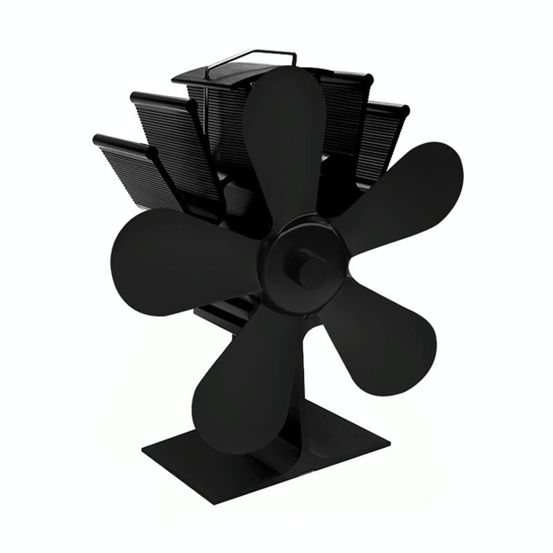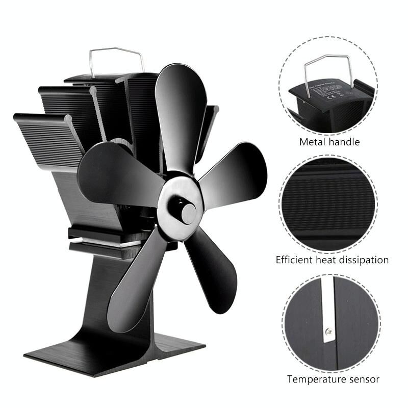 YL602 5 λεπίδων υψηλής θερμοκρασίας μεταλλικός ανεμιστήρας σόμπας τζακιού με θερμότητα (μαύρο)