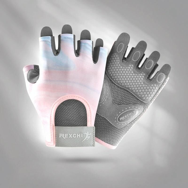 Γάντια Yoga Αθλητισμού Αντιολισθητικά Απορροφητικά Κραδασμών Μισού Δακτύλου Αντι-κοκκωνισμού, Μέγεθος: M (Ροζ Sakura)