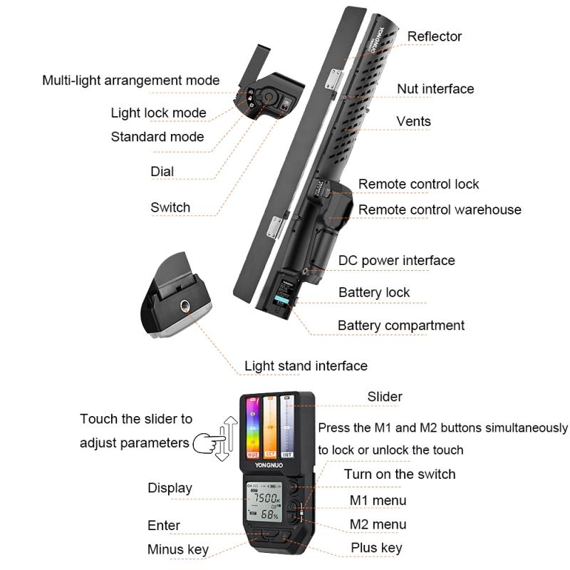 1. The LED fill light uses 400 yellow and white lamp beads and 80 RGB lamp beads, with a maximum output power of 24W and a high color rendering index of 95+. There is no flicker or ripple even at low brightness. Equipped with a detachable all-metal frame reflector, which makes the light more controllable and more convenient to use.