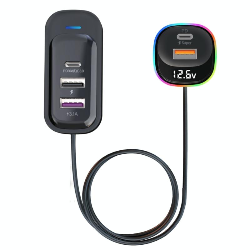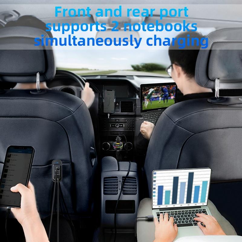 2.For Family & Travel Simultaneous Charging: Cigarette lighter socket with built-in 1.5m cable that can simultaneously charge devices in the front and rear seats