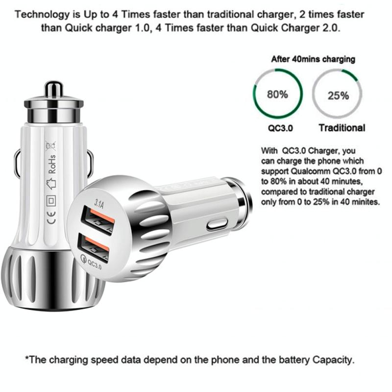 6. Car charger supports fast charging: support QC3.0 fast charging protocol, compatible with all brands of mobile phone fast charging