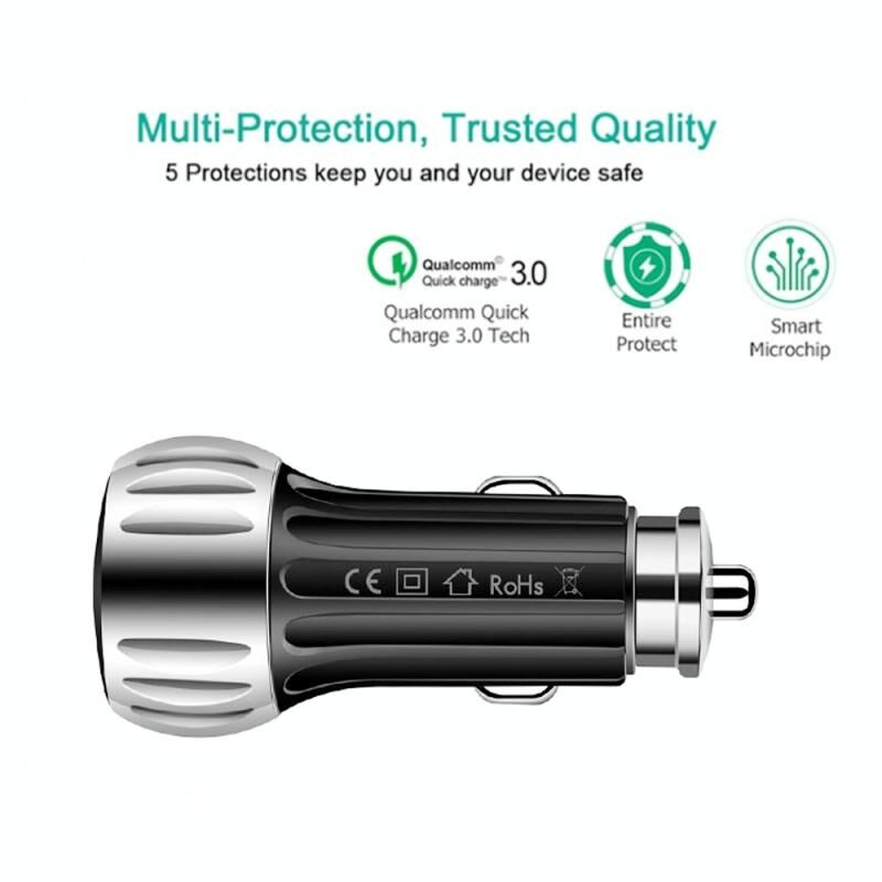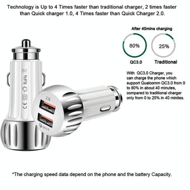 6. Ο φορτιστής αυτοκινήτου υποστηρίζει γρήγορη φόρτιση: υποστήριξη πρωτοκόλλου γρήγορης φόρτισης QC3.0, συμβατό με όλες τις μάρκες κινητών τηλεφώνων με γρήγορη φόρτιση