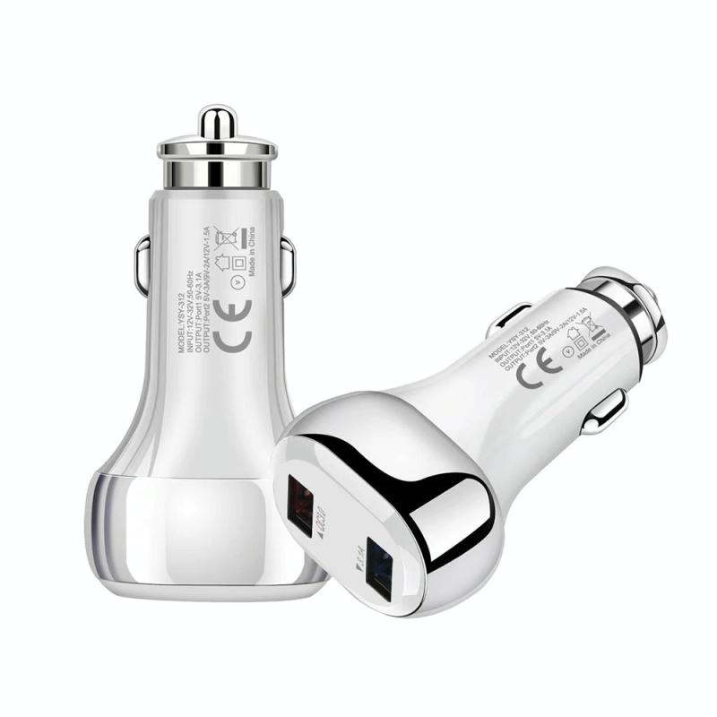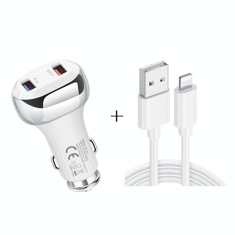 YSY-312 2 in 1 18W Portable QC3.0 Dual USB Car Charger + 1m 3A USB to 8 Pin Data Cable Set(White)