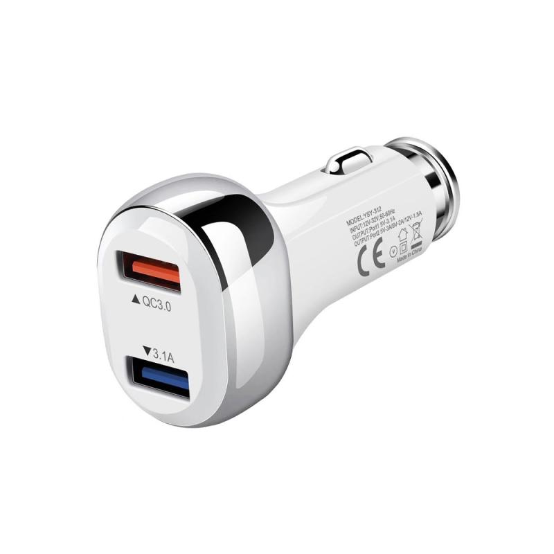 YSY-312 2 σε 1 Φορτιστής Αυτοκινήτου 18W QC3.0 + Καλώδιο USB-C 1m (Λευκό)
