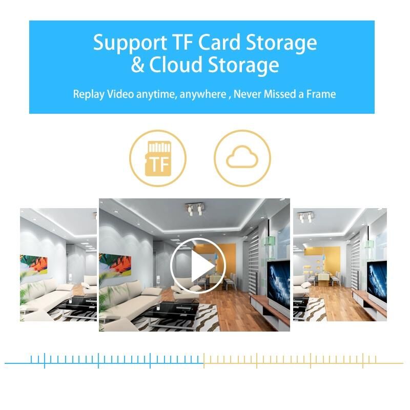 23. Storage: TF Card up to 128GB (not included); Cloud storage /Cloud disk (optional)