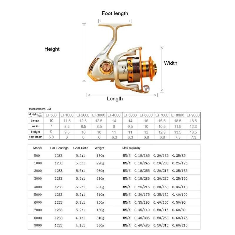 1. Στροφικός μηχανισμός ψαρέματος για γλυκό και αλμυρό νερό με σχέση μετάδοσης 5.1:1, μεταλλικό σώμα, αριστερή/δεξιά εναλλάξιμη, αναδιπλούμενη λαβή.