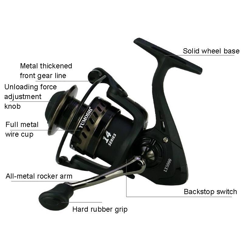 4. Όλομεταλλικό καρούλι γραμμής, χρησιμοποιώντας μεταλλικό κράμα αλουμινίου υψηλής σκληρότητας, ισχυρή σκληρότητα, ελαφρύ υλικό, κοίλο σχέδιο.