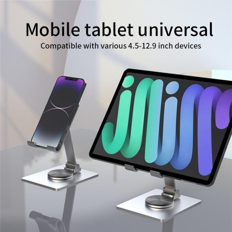 YY-022 Βάση Στήριξης Κινητού & Tablet για Επιφάνεια Εργασίας από Κράμα Αλουμινίου με Περιστροφή 360 Μοιρών (Μαύρο)