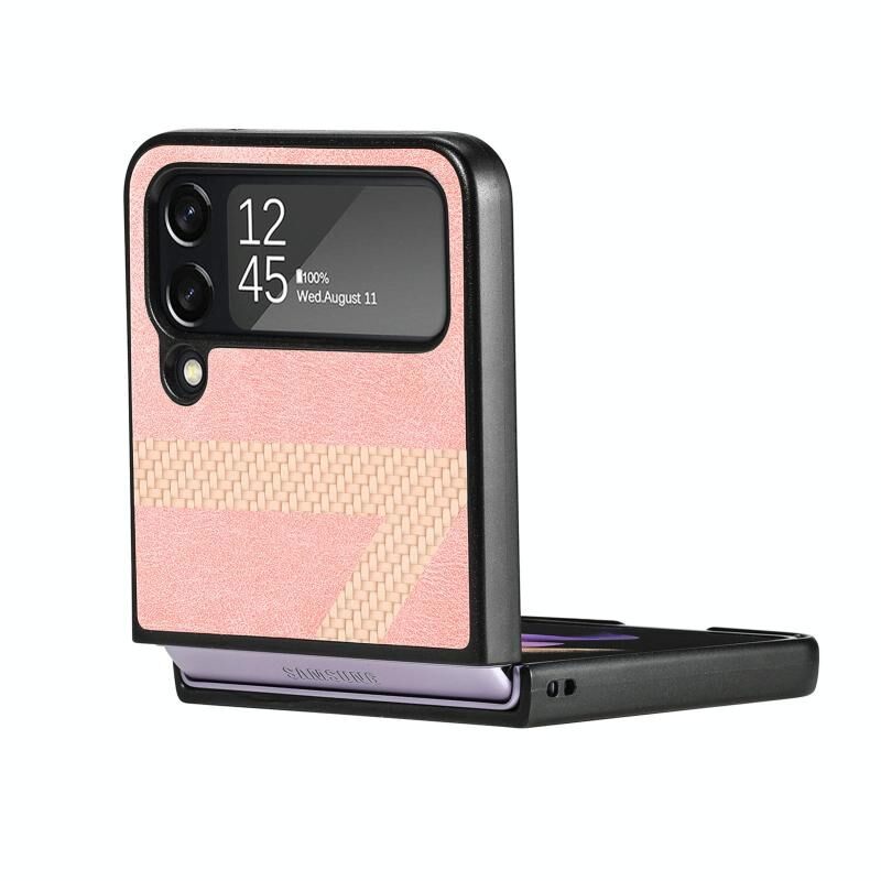 Z σχήμα Fiber ραφή Πτυσσόμενο τηλέφωνο υπόθεση για Samsung Galaxy Z Flip4 (ροζ)