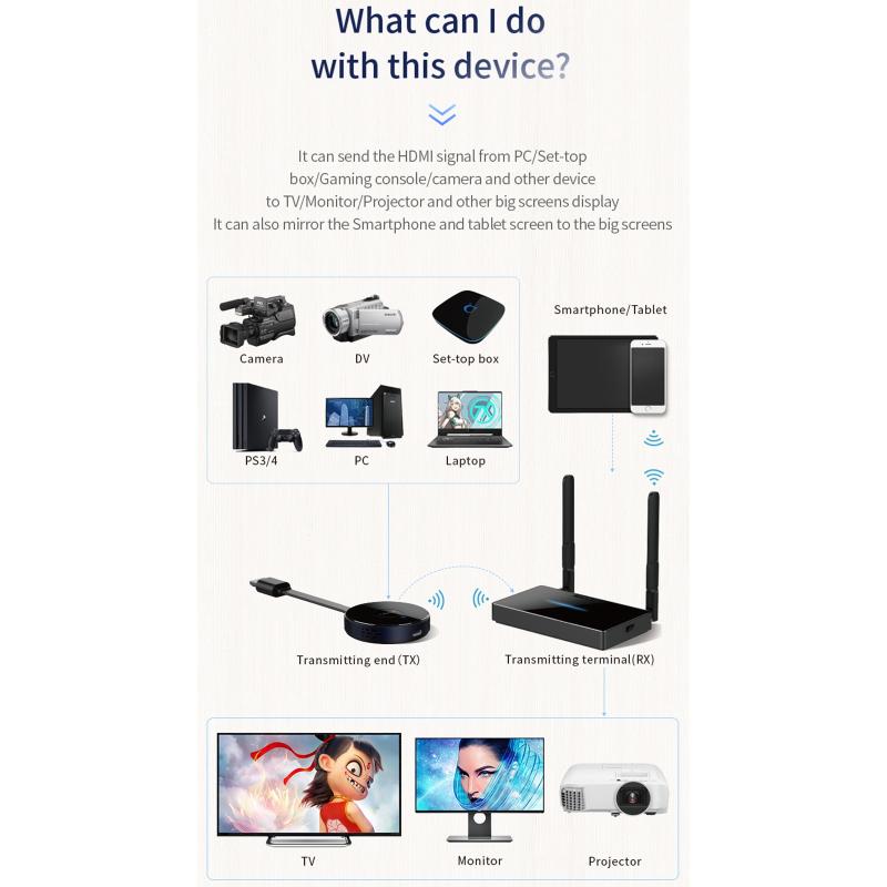 2.Ασύρματη μετάδοση HDMI από σημείο σε σημείο, μπορεί να χρησιμοποιηθεί μόλις εισαχθεί το βύσμα HDMI στη συσκευή, απόσταση μετάδοσης 30 μέτρα.