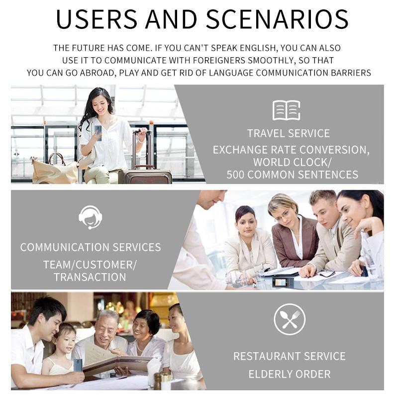 2. Support 138 languages on-line AI voice translation, 16 countries languages off-line translation(Chinese translation, Chinese traditional, English, Japanese, Korean, Russian, French, Spanish, German, etc.), and 57 languages photo translation.