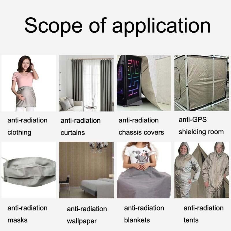 9. Scope of application: anti-radiation clothing, anti-radiation curtains, anti-radiation chassis covers, anti-GPS shielding room, anti-radiation masks, anti-radiation wallpaper, anti-radiation blankets, anti-radiation tents