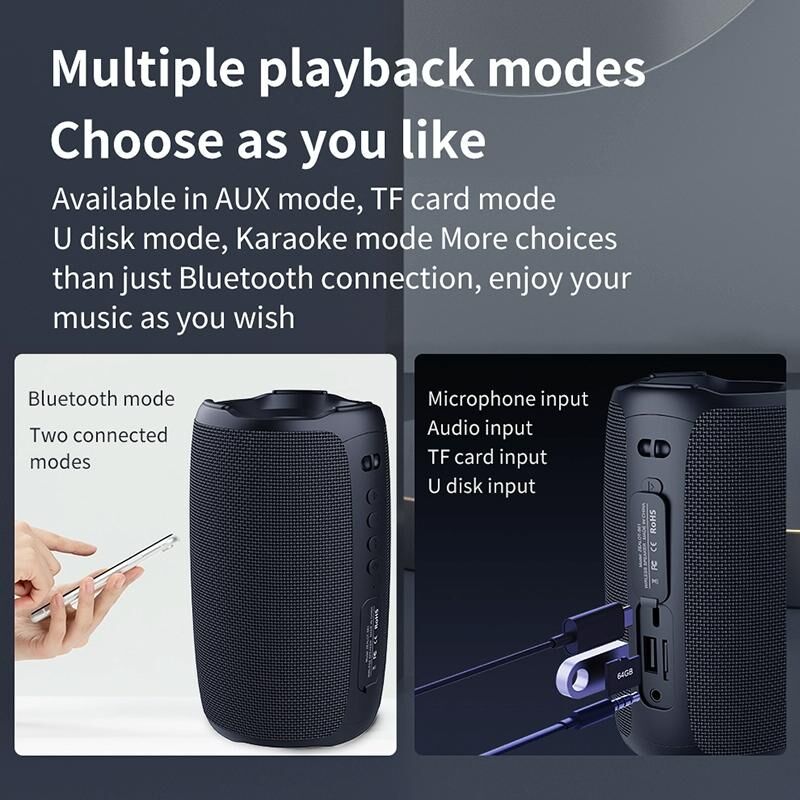 9. Function: Bluetooth / TF card / U disk / AUX / audio input / microphone input / TWS interconnection