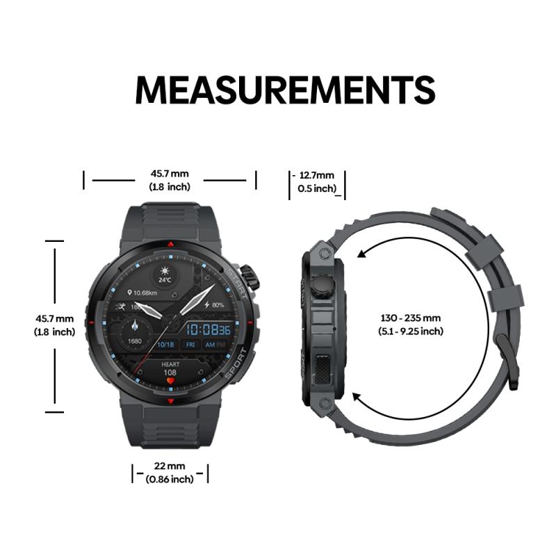 17. Μέγεθος: Καντράν 45.7x45.7x12.7mm , Πλάτος λουρακιού 22mm, εύρος περιφέρειας 130-235 mm