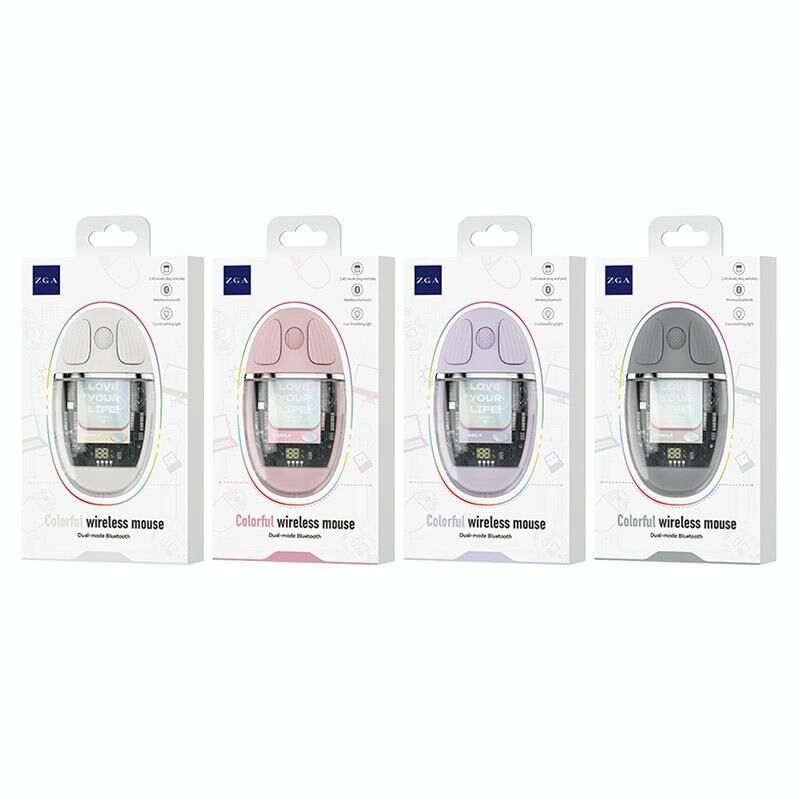 ZGA Πολύχρωμο διαφανές ασύρματο ποντίκι διπλής λειτουργίας 2.4G + Bluetooth 5.0 (κρεμώδης λευκός) (ZGA)