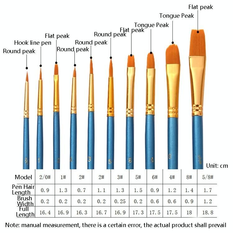 5. Χαρακτηριστικά: κεφαλή πινέλου από νάιλον, καλή ελαστικότητα, σταθερό πινέλο, δεν παραμορφώνεται εύκολα, δεν χάνει εύκολα τρίχες, διεπιχρυσωμένη αλουμινένια σωλήνα σύνδεσης, λεία και στρογγυλή υφή, στερεώνεται σφιχτά στην κεφαλή, σταθερή και δεν πέφτει εύκολα, δεν σκουριάζει εύκολα, ξύλινη θήκη στυλό, άνετη στην αφή, δεν σπάει εύκολα, ανθεκτική