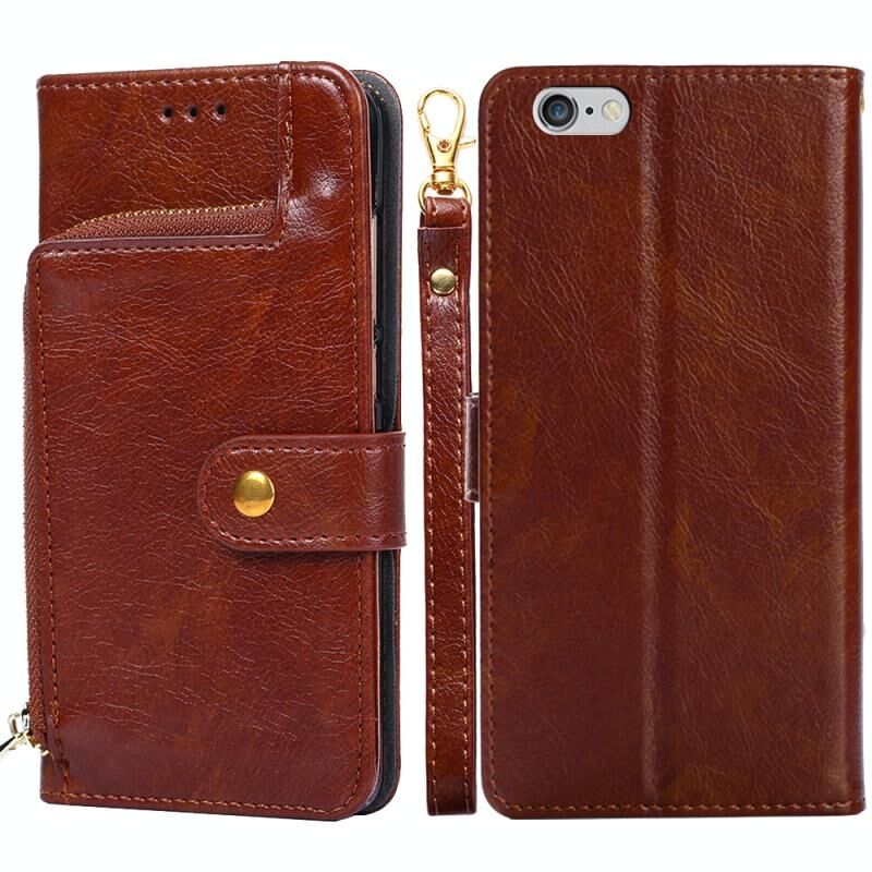 Θήκη δέρματος οριζόντιας ανατροπής με φερμουάρ PU + TPU με θήκη & υποδοχή κάρτας & πορτοφόλι & κορδόνι για iPhone 6 Plus / 6s Plus (Μαύρο)