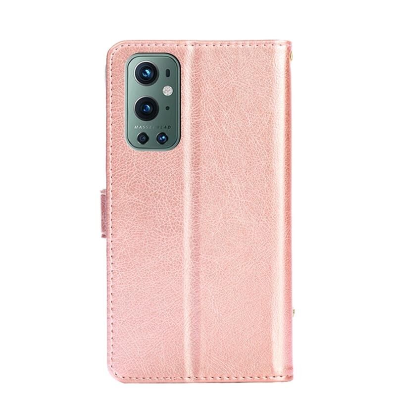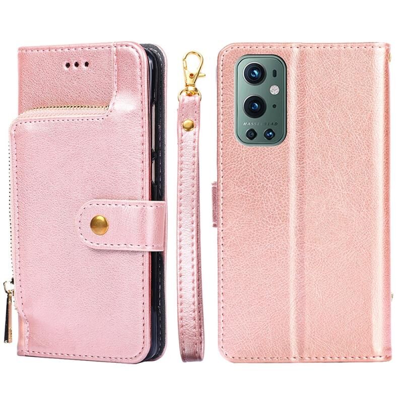 Φερμουάρ τσάντα PU + TPU οριζόντια Flip δερμάτινη θήκη με κάτοχο & υποδοχή κάρτας & πορτοφόλι & κορδόνι για OnePlus 9 Pro (Rose Gold)