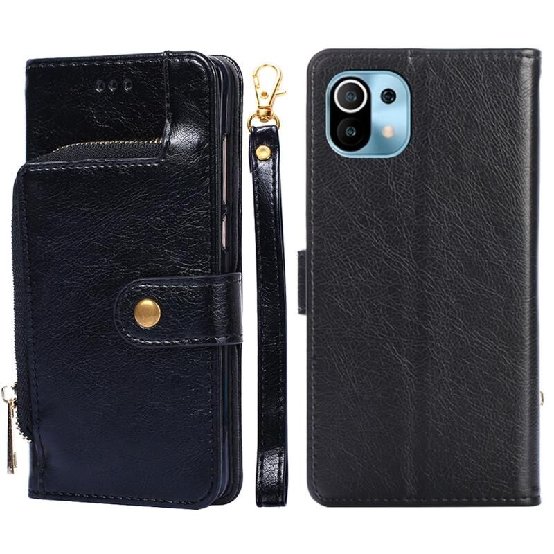 Φερμουάρ τσάντα PU + TPU οριζόντια Flip δερμάτινη θήκη με θήκη & υποδοχή κάρτας & πορτοφόλι & κορδόνι για Xiaomi Mi 11 (Μαύρο)