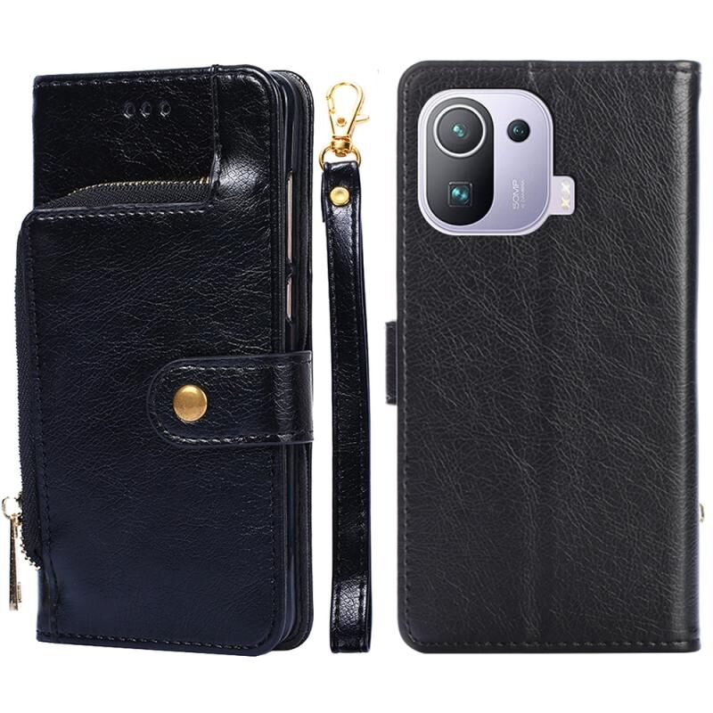 Φερμουάρ τσάντα PU + TPU οριζόντια Flip δερμάτινη θήκη με θήκη & υποδοχή κάρτας & πορτοφόλι & κορδόνι για Xiaomi Mi 11 Pro (μαύρο)