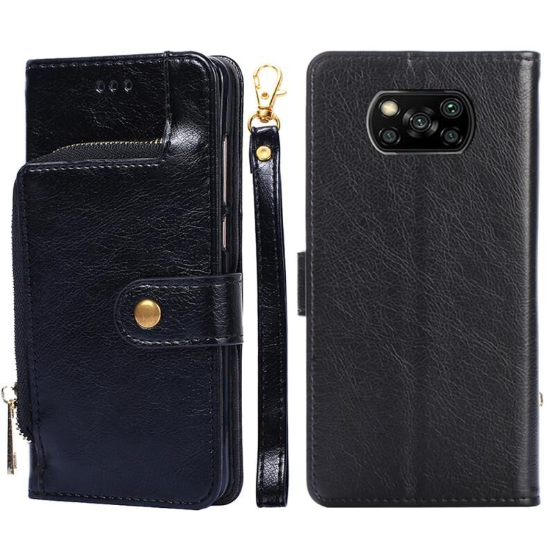 Φερμουάρ τσάντα PU + TPU οριζόντια Flip δερμάτινη θήκη με θήκη & υποδοχή κάρτας & πορτοφόλι & κορδόνι για Xiaomi Poco X3 NFC (μαύρο)