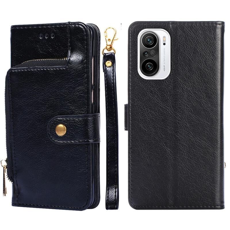 Τσάντα φερμουάρ PU + TPU οριζόντια Flip δερμάτινη θήκη με θήκη & υποδοχή κάρτας & πορτοφόλι & κορδόνι για Xiaomi Redmi K40 / K40 Pro (Μαύρο)