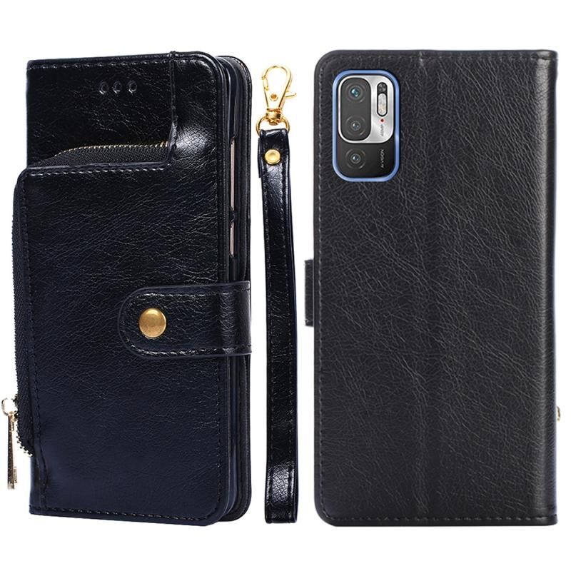 Τσάντα φερμουάρ PU + TPU οριζόντια Flip δερμάτινη θήκη με θήκη & υποδοχή κάρτας & πορτοφόλι & κορδόνι για Xiaomi Redmi Note 10 5G (μαύρο)