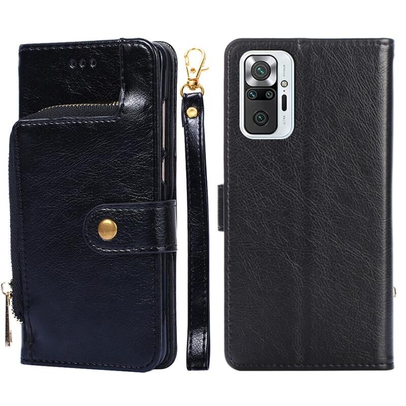 Τσάντα φερμουάρ PU + TPU οριζόντια Flip δερμάτινη θήκη με θήκη & υποδοχή κάρτας & πορτοφόλι & κορδόνι για Xiaomi Redmi Σημείωση 10 Pro / Σημείωση 10 Pro ινδική έκδοση / Σημείωση 10 Pro Max (μαύρο)