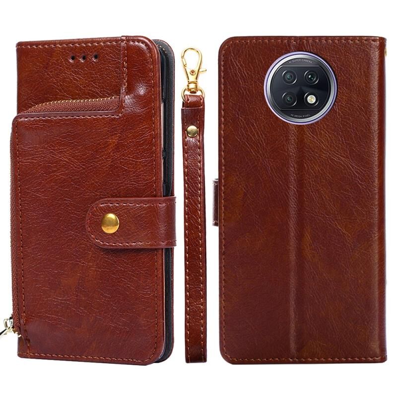 Φερμουάρ τσάντα PU + TPU οριζόντια Flip δερμάτινη θήκη με κάτοχο & υποδοχή κάρτας & πορτοφόλι & κορδόνι για Xiaomi Redmi Note 9 5G CN έκδοση / Σημείωση 9T 5G (Καφέ)
