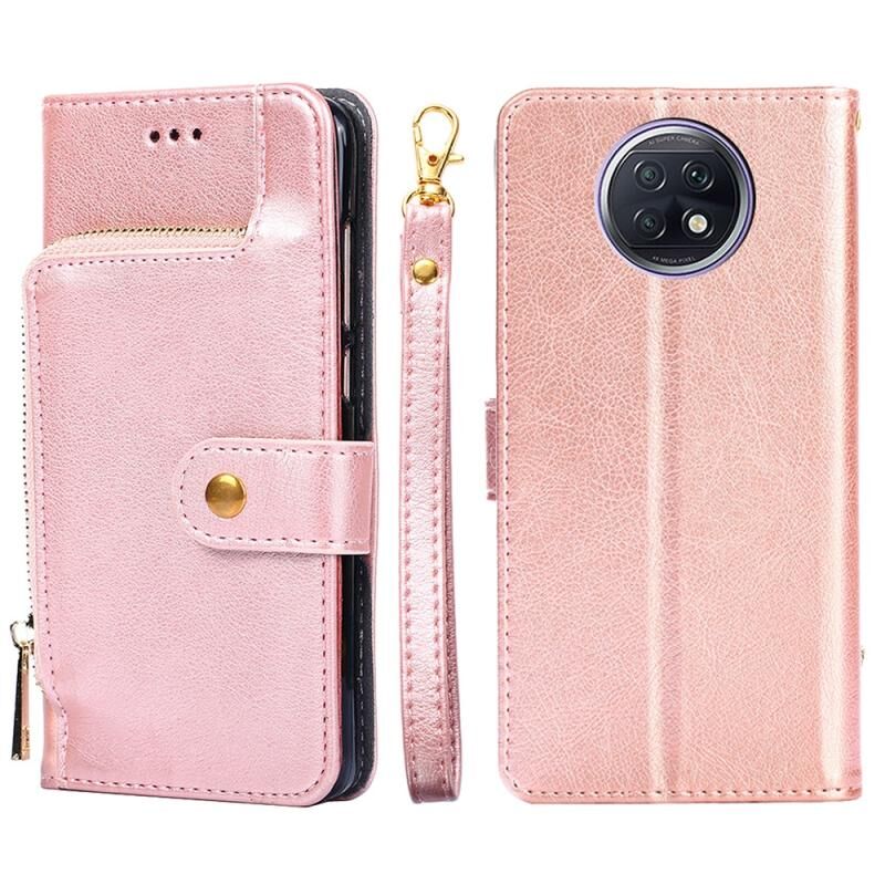 Φερμουάρ τσάντα PU + TPU οριζόντια Flip δερμάτινη θήκη με κάτοχο & υποδοχή για κάρτες & πορτοφόλι & κορδόνι για Xiaomi Redmi Note 9 5G CN έκδοση / Σημείωση 9T 5G (Ροζ χρυσός)