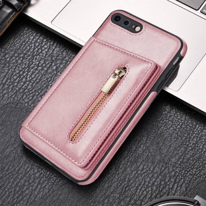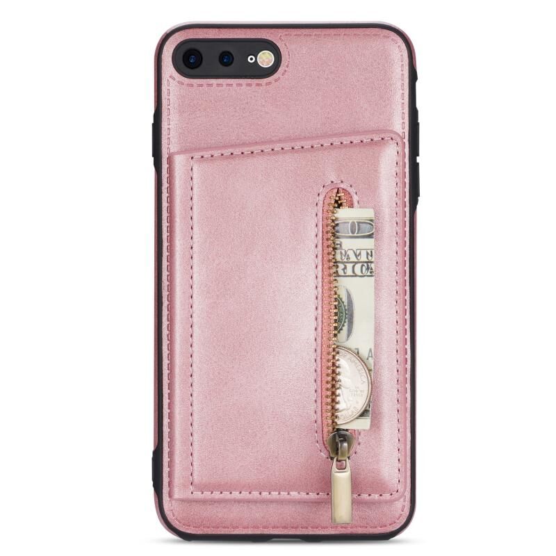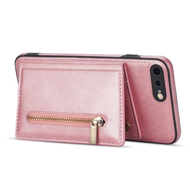 Θήκη κινητού τηλεφώνου με κάρτες και φερμουάρ για iPhone 8 Plus / 7 Plus (Μαύρο)
