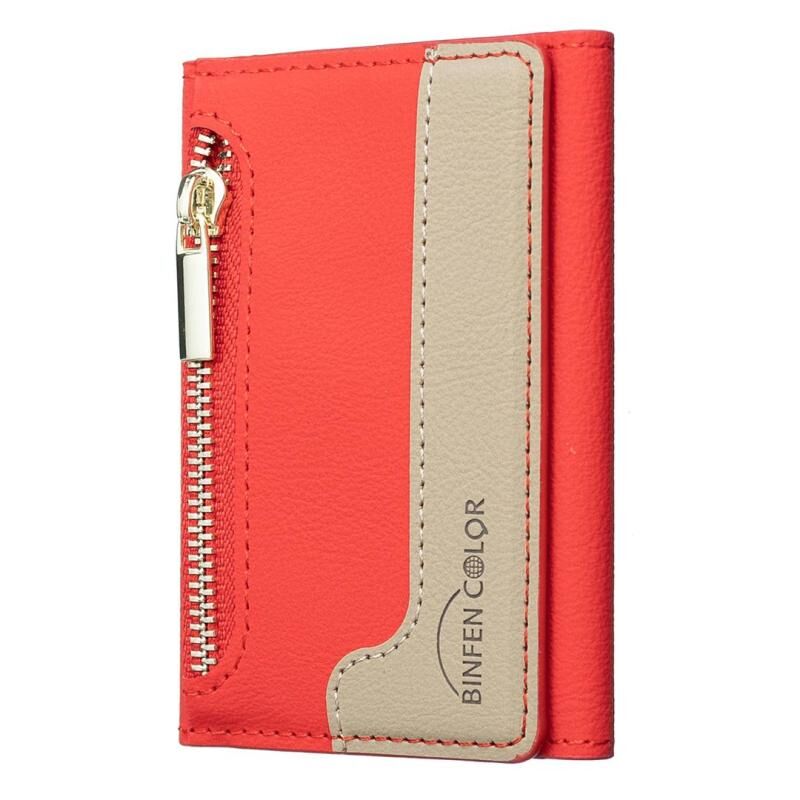 Zipper Leather Horizontal Magnetic Wallet Card Bag Case(Red)