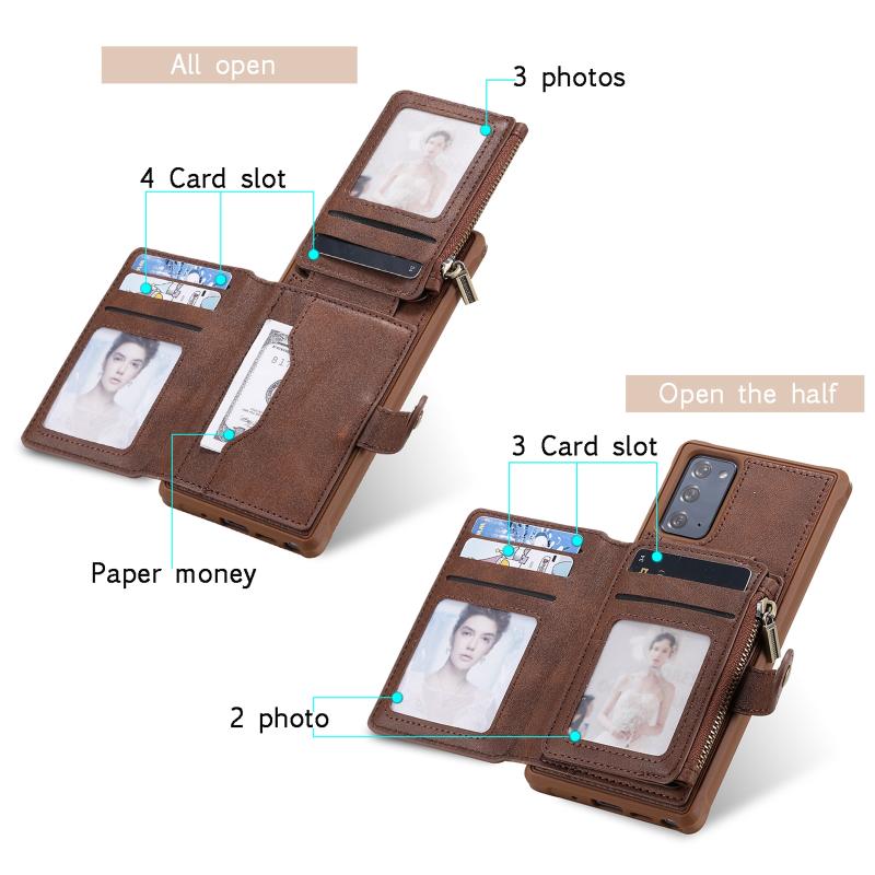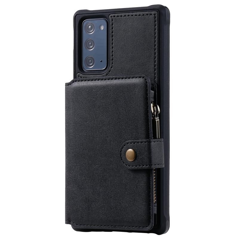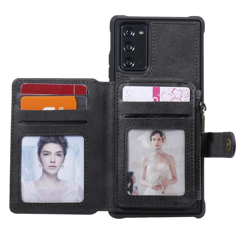 Zipper Shockproof Protective Case with Card Slots & Bracket & Photo Holder & Wallet Function For Samsung Galaxy Note20(Black)