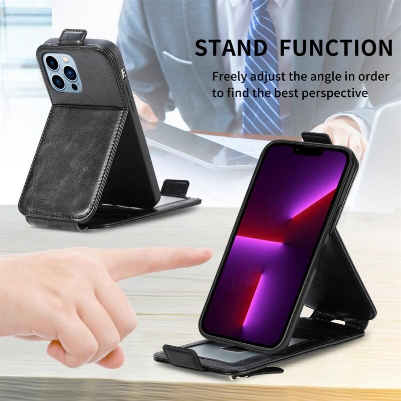 Θήκη τηλεφώνου τύπου flip από δέρμα με κάθετη τσέπη με φερμουάρ για iPhone 11 Pro (Μαύρο)