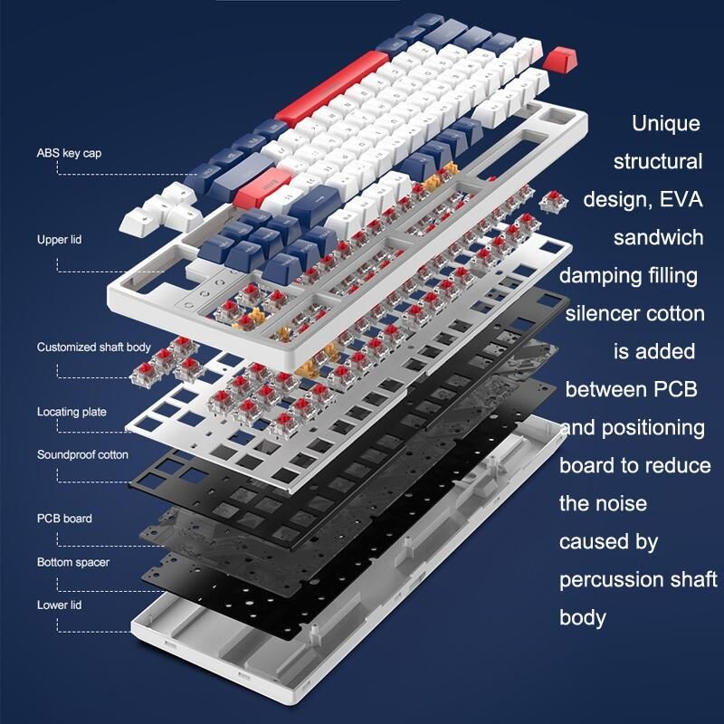 2. Unique structural design, EVA sandwich damping filling silencer cotton is added between PCB and positioning board to reduce the noise caused by percussion shaft body