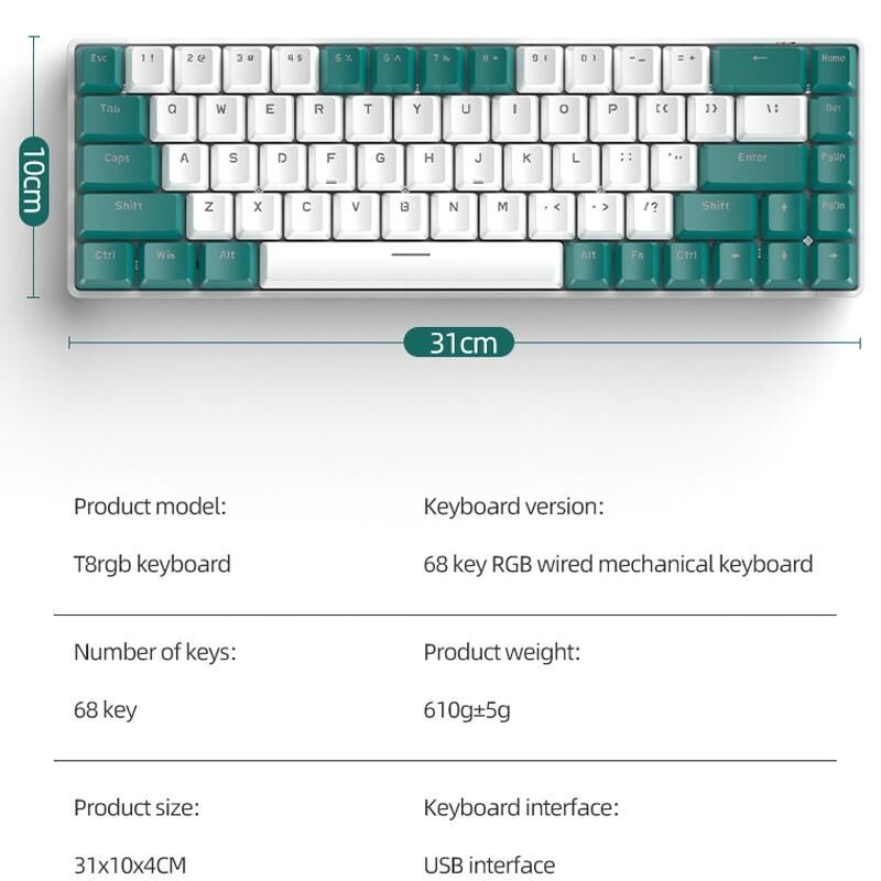 1. 68 key RGB mechanical keyboard full key no punching mechanical shaft