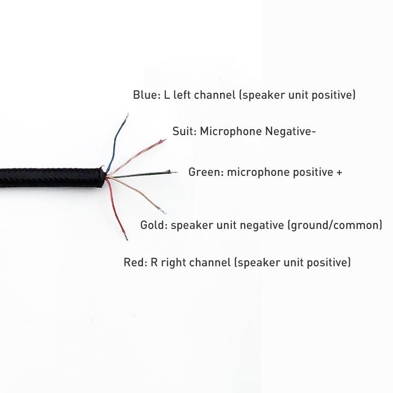 5. Μπλε καλώδιο L+, κόκκινο καλώδιο R+, πράσινο καλώδιο MIC+, χάλκινο καλώδιο κοινής γείωσης, λουλουδάτο καλώδιο MIC-