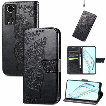 For ZTE Axon 30 5G Butterfly Love Flower Embossed Horizontal Flip Leather Case with Holder & Card Slots & Wallet & Lanyard(Black)