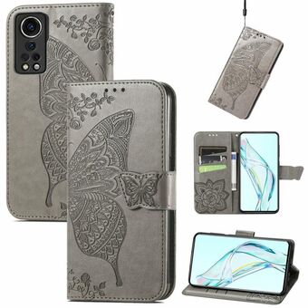 For ZTE Axon 30 5G Butterfly Love Flower Embossed Horizontal Flip Leather Case with Holder & Card Slots & Wallet & Lanyard(Gray)