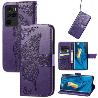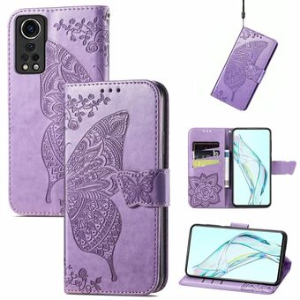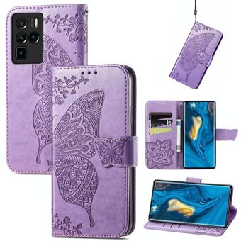 For ZTE Axon 30 5G Butterfly Love Flower Embossed Horizontal Flip Leather Case with Holder & Card Slots & Wallet & Lanyard(Light Purple)