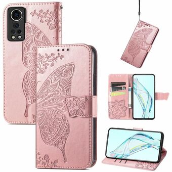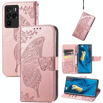 For ZTE Nubia Z30 Pro Butterfly Love Flower Embossed Horizontal Flip Leather Case with Holder & Card Slots & Wallet & Lanyard(Rose Gold)